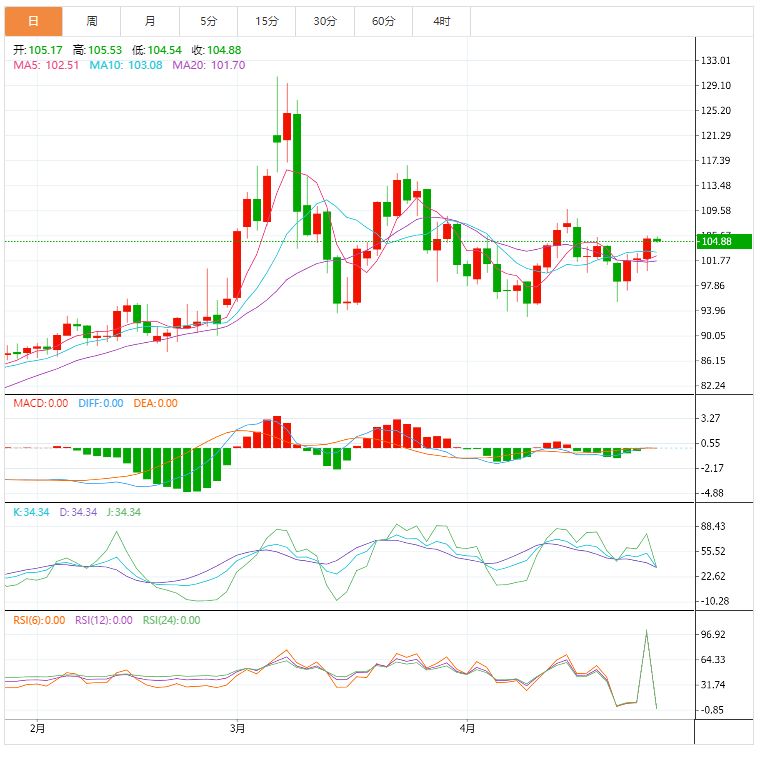 周五亚盘,美油现报104.87美元/桶;油价周四上涨超3%,因德国加入欧盟其他成员国对俄罗斯石油实施禁运的可能性增加,这可能会令本已承压的全球原油供应状况进一步收紧。