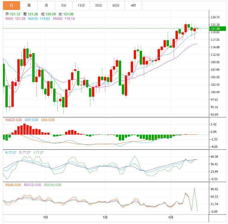 地缘局势紧张不减,利比亚减产进一步使得供给收紧,且部分国家疫情限制放松,油价短期或在120关口震荡上涨。日内重点关注OPEC月报、美国5月PPI年率,周三4:30公布API数据。