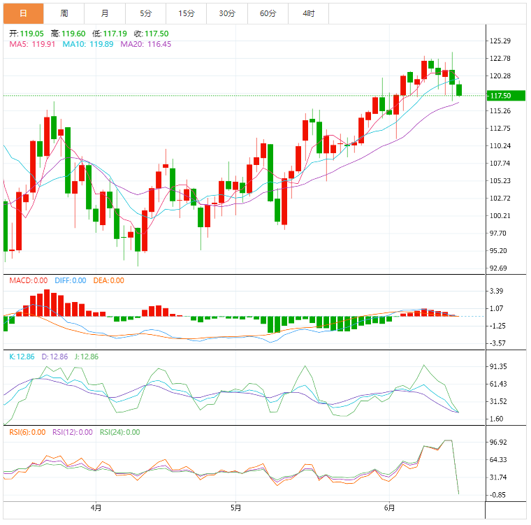 中间通道区域的兴趣在122.50美元/桶,然后通道顶部接近125美元/桶。100移动平均线位于200移动平均线之上表明阻力最小的路径是上行,或者支撑更有可能守住而不是突破。