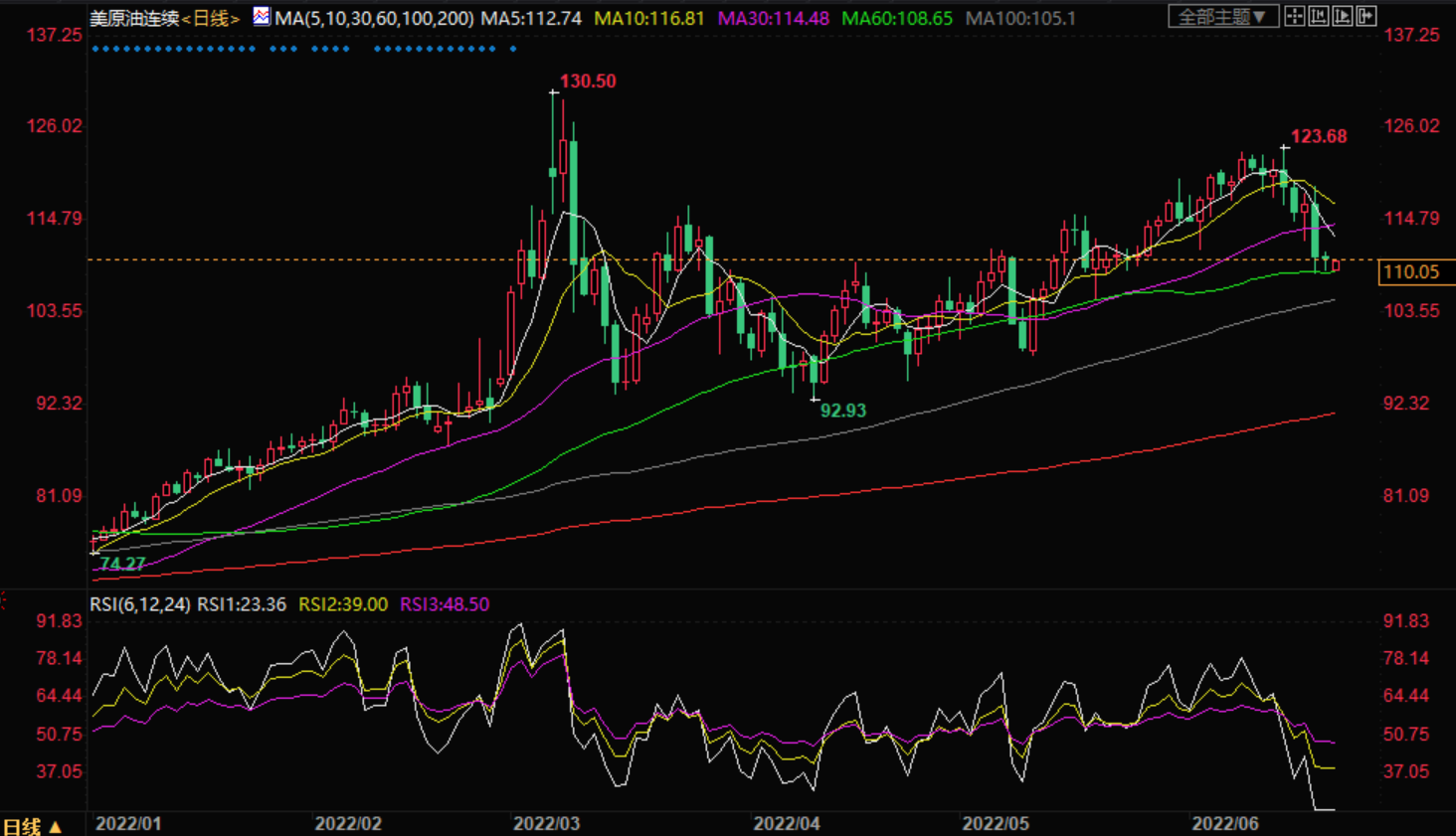 周二(6月21日)亚洲时段,WTI原油在110美元附近窄幅波动。油价周一从上周的跌势中收窄跌幅,此前拜登称美国经济衰退并非“不可避免”。交易员仍在思考激进的货币政策紧缩是否会让经济萎缩并遏制消费。