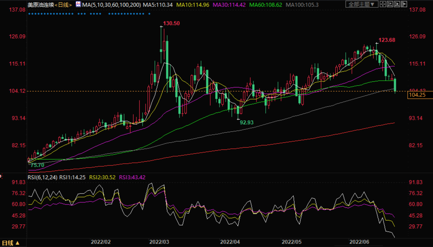 相对强弱指数也处于超卖区域,表明看跌压力正在消退,买家可能很快就会接手。如果这种情况发生,原油可能会重新测试每桶110美元左右的破通道底部。