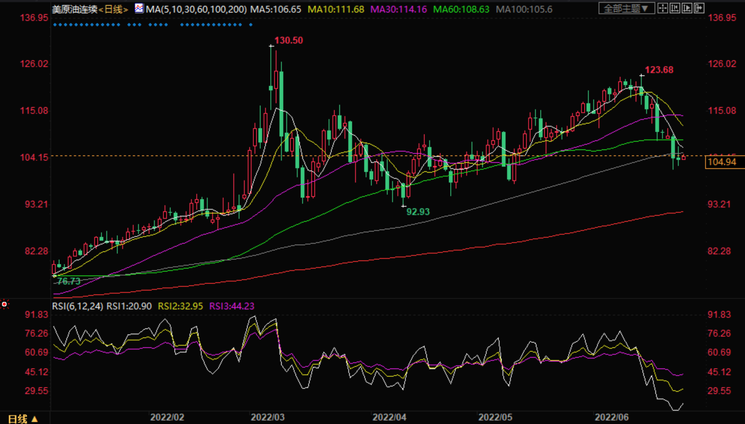 周五(6月24日)亚洲时段,美油徘徊于104美元/桶;油价周四微跌,美联储主席鲍威尔专注于遏制通胀是“无条件的”,而且劳动力市场的强势不可持续夺得言论激起了人们对更多加息引发经济衰退的担忧,OPEC+8月将继续增产也为空头助力。