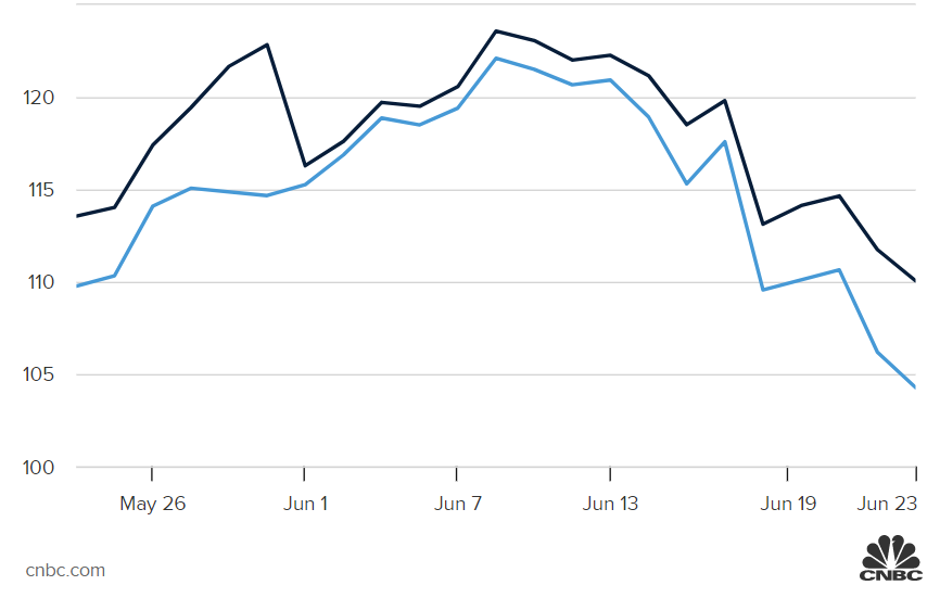 自去年以来,油价一直在上涨,在俄罗斯对乌克兰发动无端战争后飙升至高位。但自5月底以来,布伦特原油价格已从每桶120美元以上跌至最后交易价约109美元,或下跌约10%。西德克萨斯中质原油期货同期下跌超过9%。