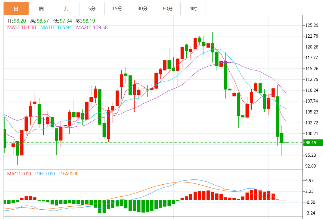 技术上,MACD死叉运行,KDJ死叉运行,油价失守短期均线支撑,短线偏向进一步下探200日均线93.25附近支撑,4月11日低点92.93和3月15日低点93.53距离都相去不远。目前来看,短线有效下破92.93附近支撑的可能性还不是很大。
