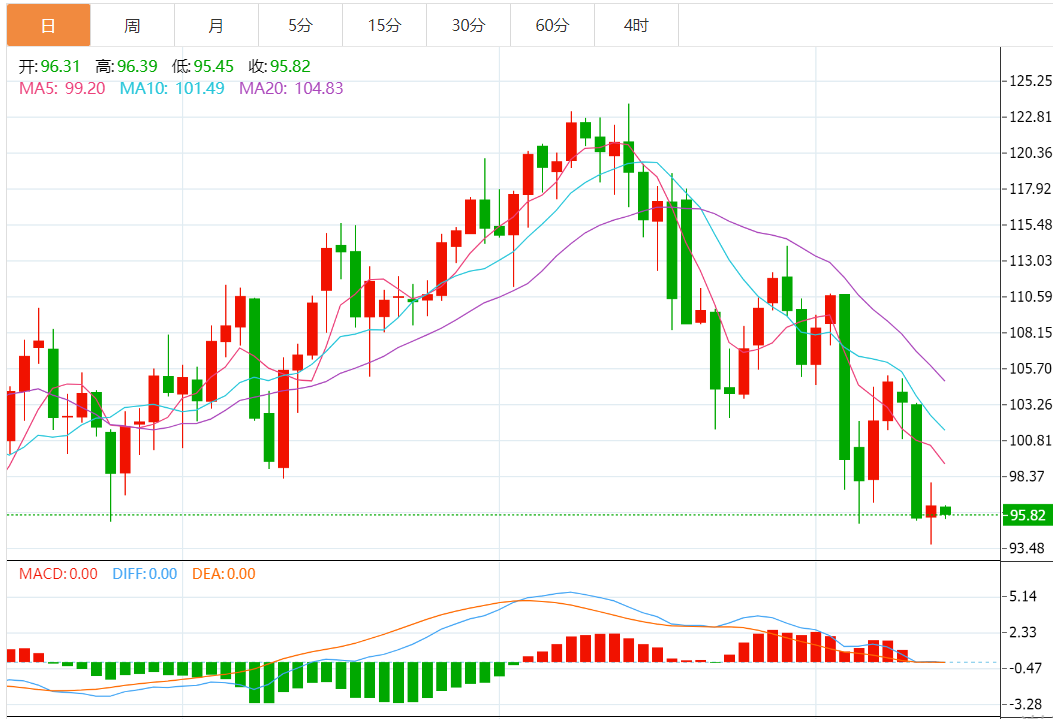 同时,期货方面,8 月份交割的WTI 原油收涨0.46 美元,收于每桶96.30 美元,而9 月全球基准布伦特原油上扬0.11 美元,收于99.60 美元。尽管因担忧加息前景将导致供应紧张出现破坏需求的经济衰退,但继油价跌至4 月份以来的最低水平后出现整理。
