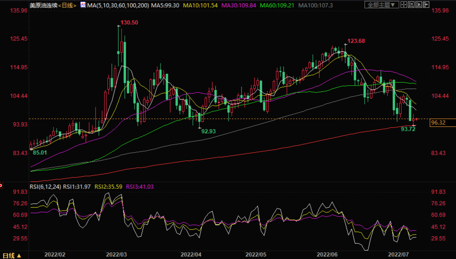 周四亚盘,美原油徘徊于95.96附近,油价周三小幅上涨,尽管美国石油库存增加,且美国通胀数据支持美联储再次大幅加息。全球指标布伦特原油自3月触及139美元以来已经大幅回落,该价格接近2008年创下的纪录高位。投资者近期一直在抛售石油,担心为阻止通胀而积极加息将减缓经济增长并打击石油需求。