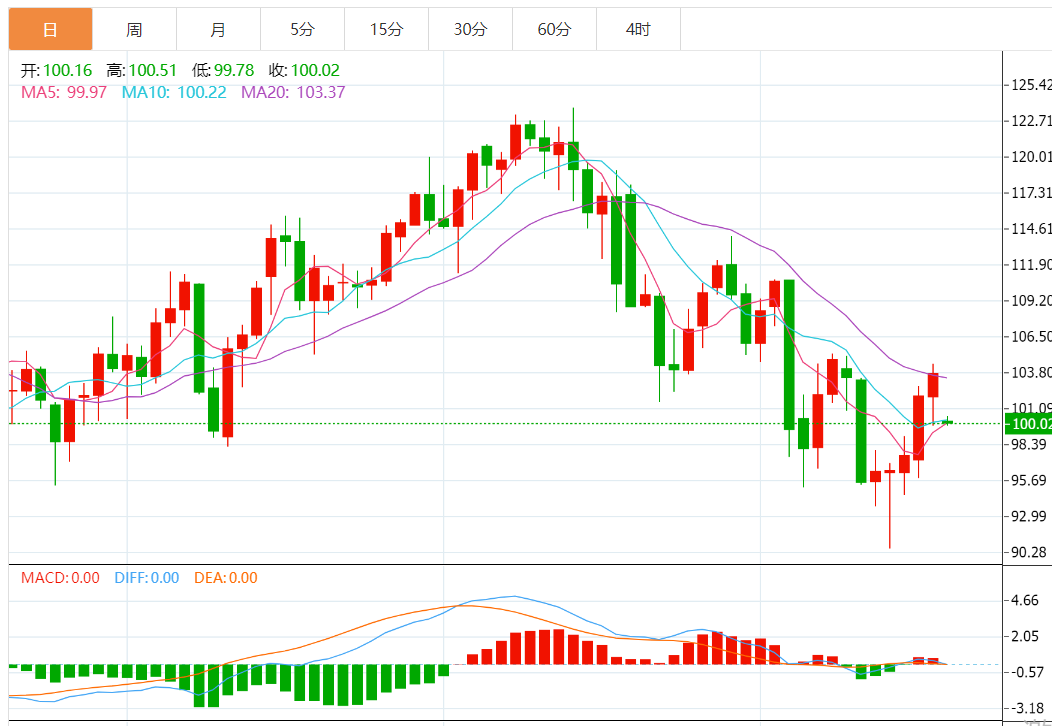 从技术角度来看,WTI原油交投于100.00美元附近,支撑处在200日均线94.41美元,而上行阻力处在20日均线103.68美元。若WTI油价进一步上涨接近日线高位104.44美元附近,该水平将由阻力反转为支撑。