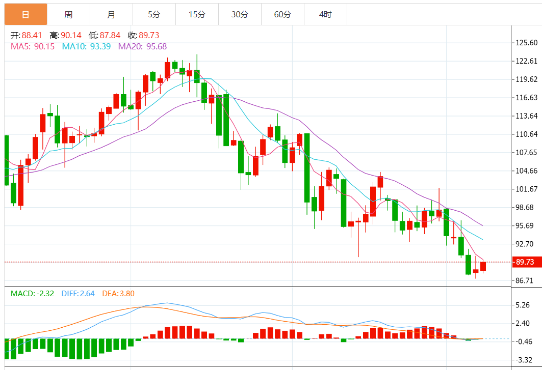 技术上,油价再次守住了2月18日低点87.46附近关键支撑,上一交易日录得接近“十字星”的K线,如果本交易日录得阳线,则形成类似“希望之星”的底部K线组合,即使油价不扭跌为涨,起码也增加低位震荡调整的可能性。初步阻力在5日均线90.20附近,8月1日低点阻力在92.41附近,10日均线阻力在93.42附近,若能收复该位置,则增加后市看涨信号。