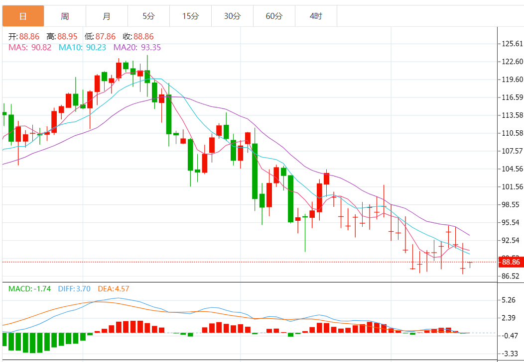技术上,油价一度跌破了2月18日低点87.46附近支撑,虽然目前小幅反弹,但在收复5日均线90.81前,短线偏向空头,短线继续关注87.46附近支撑,若下破该支撑,则暗示油价打开新的下跌空间,目标可以看向1月24日低点81.90附近,甚至是80整数关口,短线的话,85.00关口附近也存在一些心理支撑。