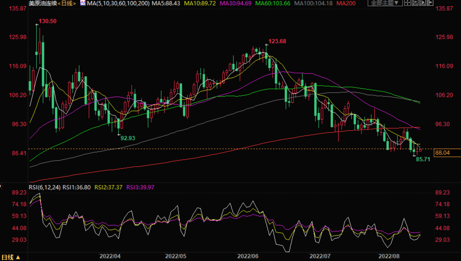 周四亚盘,油价徘徊于87.57附近。油价周三在触及六个月最低后由跌转升,上扬约1.5%,美国原油库存大幅下降盖过了对俄罗斯产量和出口增加以及经济衰退的担忧。美国能源信息署(EIA)周三表示,截至8月12日的一周,原油库存骤降710万桶,至4.25亿桶,预估为减少27.5万桶。