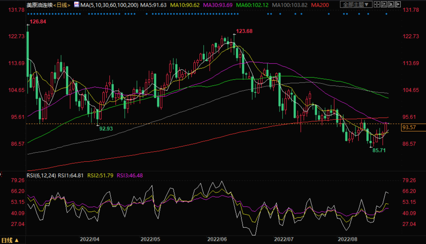 如果油价决定性突破94.16-94.32美元的供应区间,将推动油价向8月3日96.00美元附近的高点逼近,随后将出现100.00美元的心理阻力位。