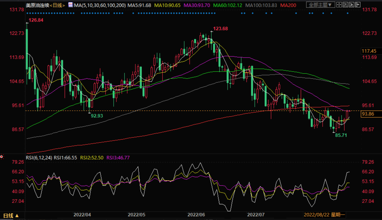 如果突破该区域上方,就可以确认与反转模式相同高度的反弹正在进行中。双底油价在每桶87-95美元左右。