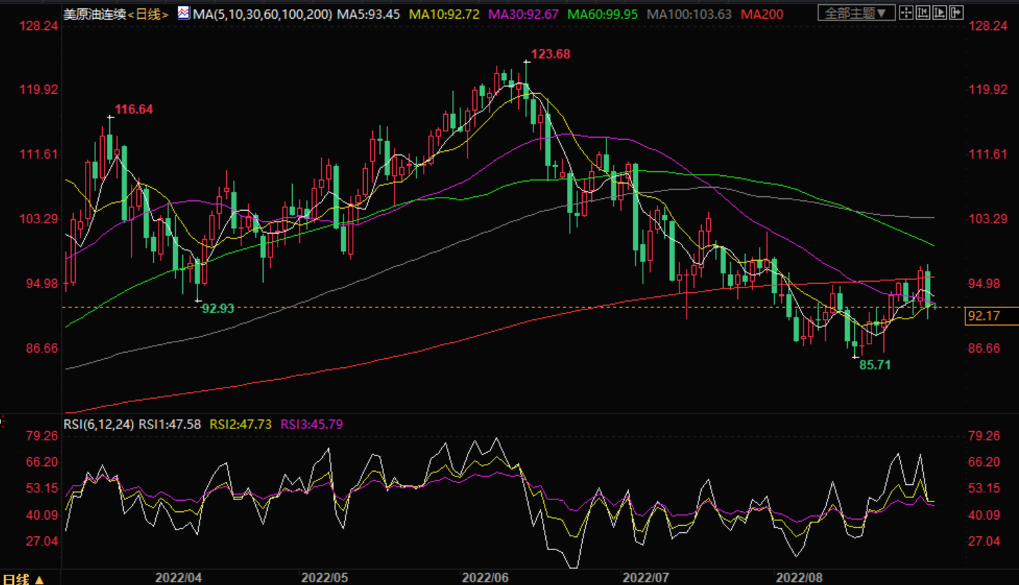 周三亚市盘初,美油交投于92.15美元/桶附近;油价周二大跌近5%,创下约一个月来最大跌幅,人们担心随着全球央行加息以对抗不断攀升的通胀,燃料需求可能疲软,而且伊拉克的动荡局势未能削弱该国的原油出口。