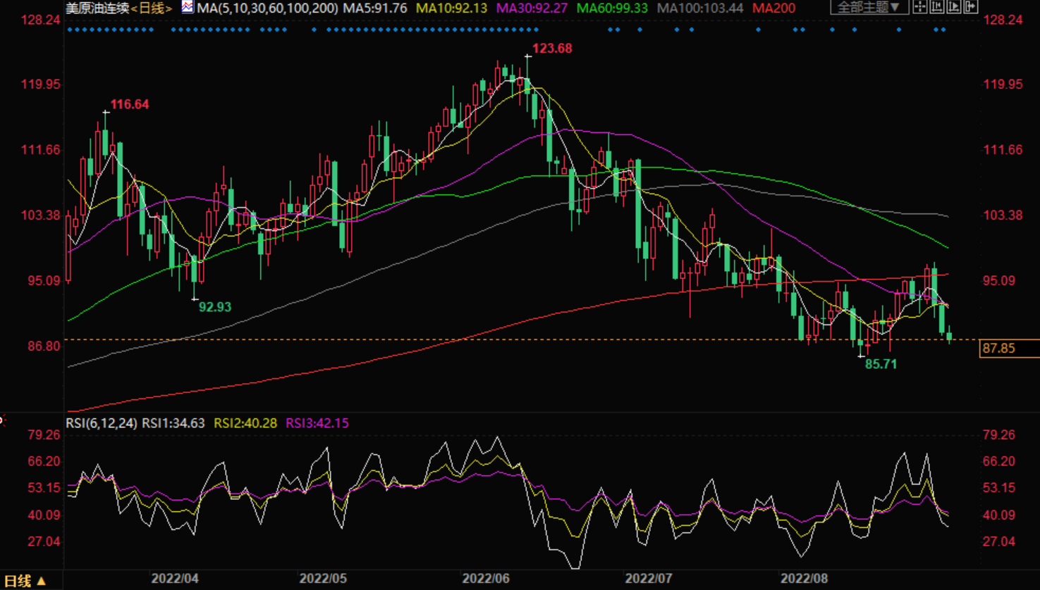 基于振荡因素,买家可能准备回到价格区间的底部,并将原油带回价格区间的顶部。随机因素已经表明卖者出现超卖或疲态,因此转高将证实看涨压力上升。