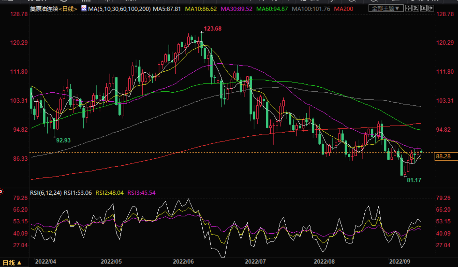 周四亚市盘初,美油交投于88.80美元/桶附近;油价周三上涨超1.5%,国际能源监督机构IEA预计,由于今冬价格高涨,从天然气转为石油取暖的情况会增加,且美国面临铁路工人罢工;另外,美补充石油储备不包括价格触发机制,且具体时间或比较遥远,为多头提供了一些动力。