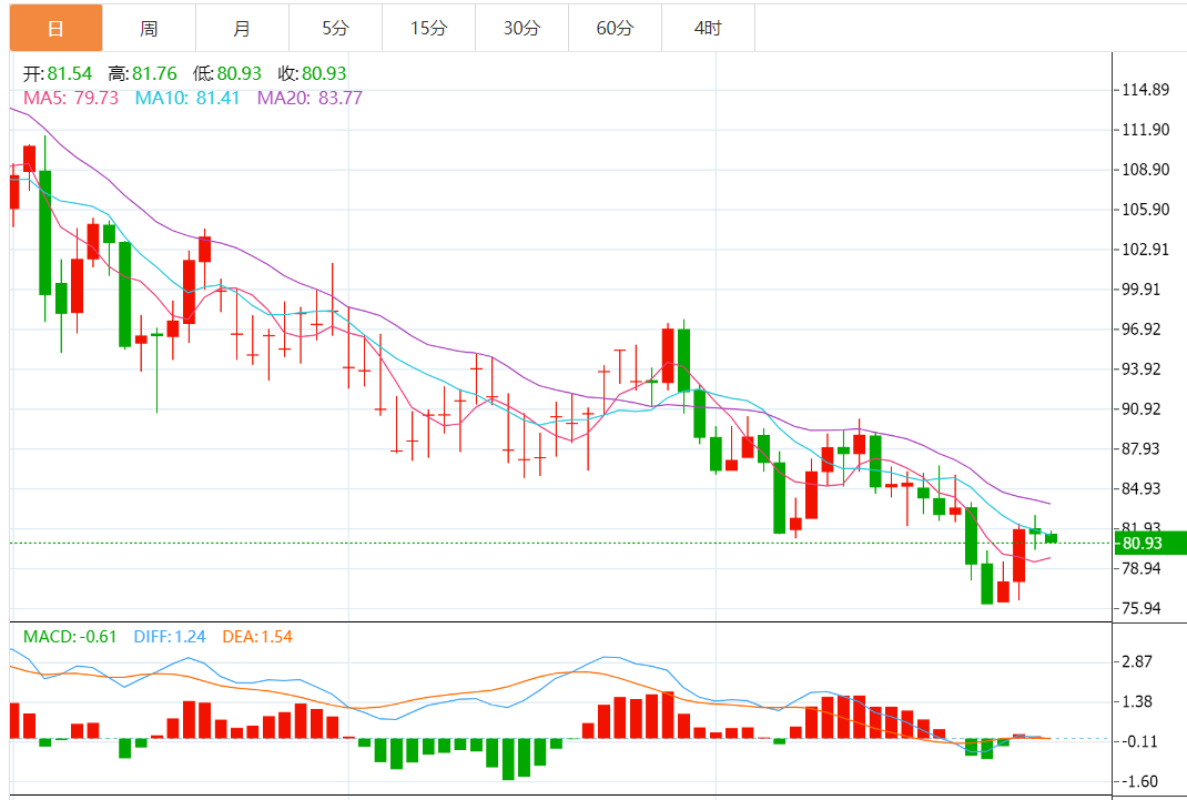 技术上,WTI油价自9月7日以来的前期支撑出现回落,WTI油价若出现回调,将重测80.00美元整数关,然后是周线水平支撑78.00美元。