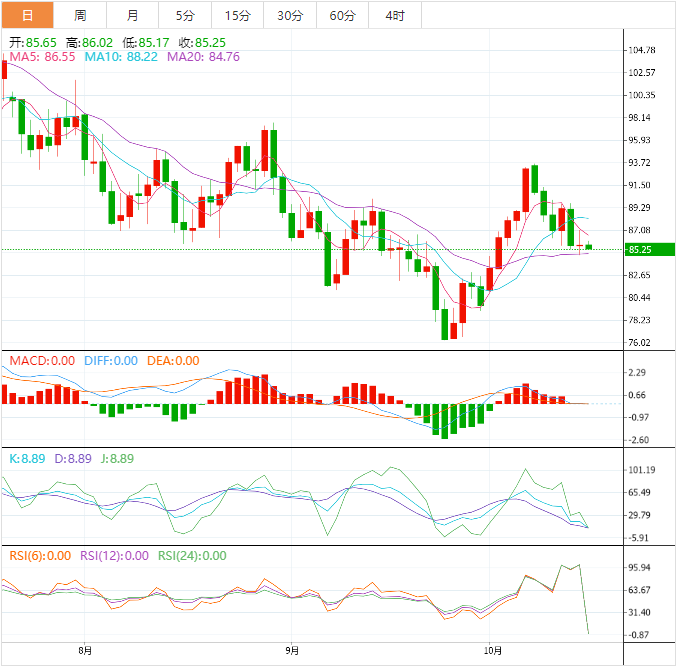 技术上,鉴于目前21日均线仍给油价提供支撑,MACD金叉信号仍在,若油价能够回升至10日均线88.40上方,则削弱短线看空信号;进一步阻力在9月5日高点90.36附近;布林线上轨高点阻力在93.31附近,若意外强势顶破该阻力,则增加后市看涨信号。