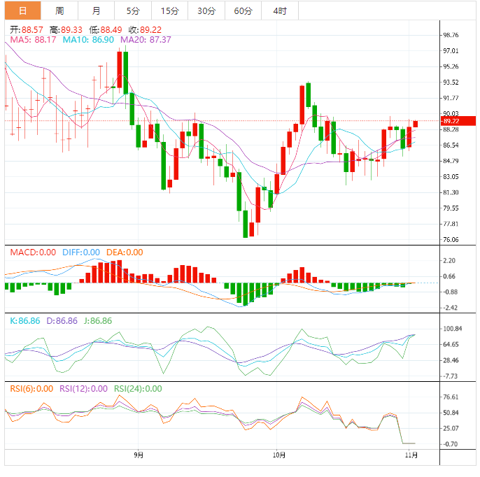 周二亚盘,美油交投于88.67美元/桶附近;油价周二上涨超2.7%,收复了上一交易日的跌幅,因对需求的乐观;在石油输出国组织(OPEC)和包括俄罗斯在内的盟友组成的OPEC+将其目标产量削减200万桶/日之后,布伦特和美国原油在10月份均录得月度涨幅,这是自5月以来首次。