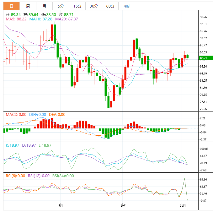 更大的修正可能达到每桶87.34美元的61.8% Fib水平,或者接近每桶87美元的通道支撑位和200移动平均线动态支撑位。