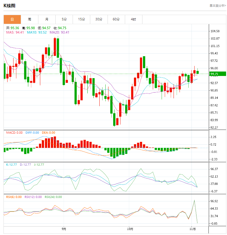 阻力:90.35;92.21;93.61;95.72;98.31;