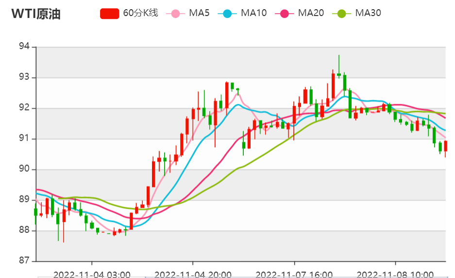 星期二(十一月八日),美国原油在窄幅波动。美国股市隔夜上涨,也略微支撑油价。然而,油价没有在10月10日突破93.63的高点,这起到了帮助作用。一些多头获利了结,暂时减缓了油价走势。G7打算对俄石油设定价格上限,或会干扰俄罗斯石油出口。此外,欧佩克+减产正鼓励更多对冲基金在原油市场建立看涨头寸。