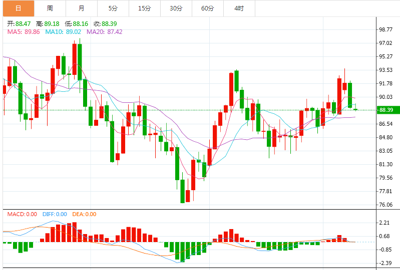 技术上,油价短线看空信号显著增强,初步支撑在布林线中轨87.89附近,若回落至该位置下方,则油价可能会进一步跌向布林线下轨82.98附近;短线的话。55日均线86.66附近、10月31日低点85.29附近也还分别存在一些支撑。
