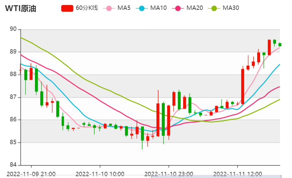 周五(11月11日),国际油价大涨逾2.5%,因全球最大原油进口国中国进一步优化疫情防控措施。全球最大经济体美国软着陆可能性提升也利好油价。NYMEX原油上看91.34美元。