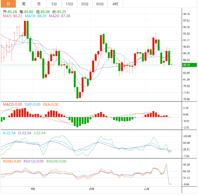 即便如此,从07年11月开始向下倾斜的阻力线(接近88.10美元)仍然是石油买家进场的关键。