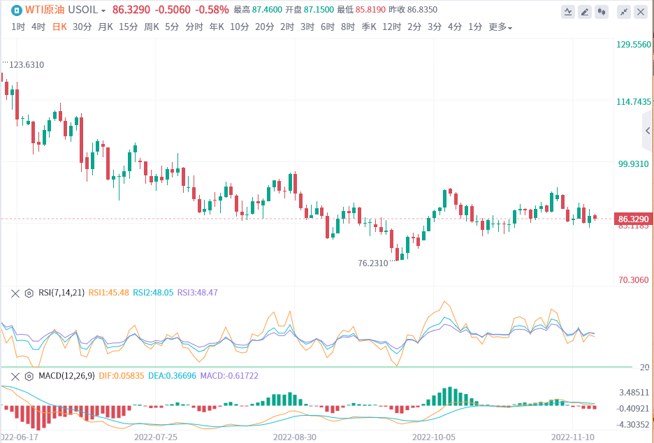 然而,如果支撑位成立,原油可能会再次反弹至每桶87美元左右的三角形顶部,该价格接近200SMA动态拐点。