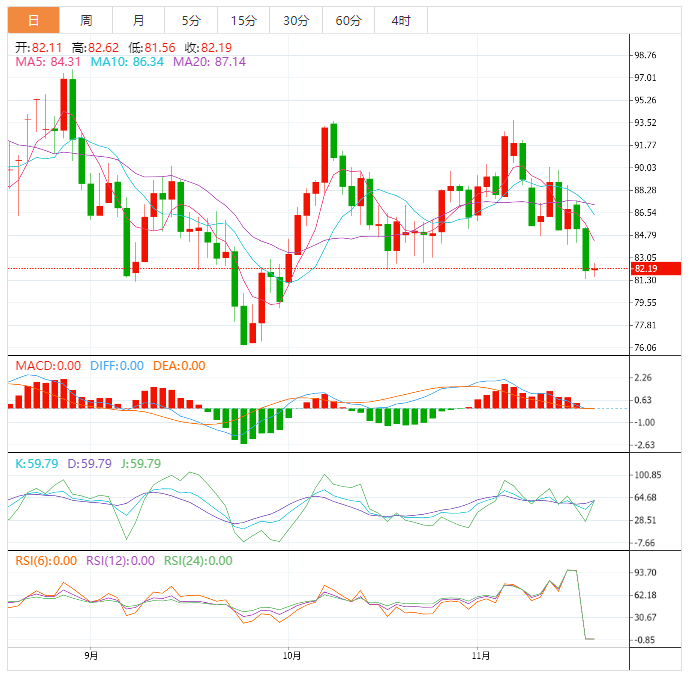 斐波那契回撤工具显示了更多卖家可能在等待的位置,50%的水平最接近每桶85美元附近的破碎支撑位,这可能足以抑制上涨。