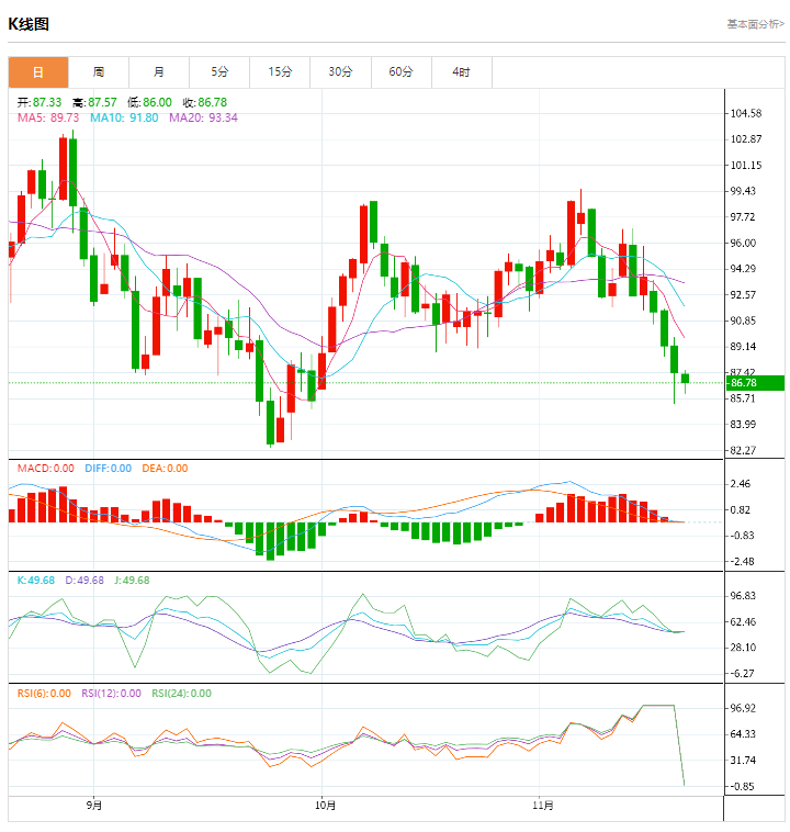 短线操作建议:观望。激进者可等待突破83.56-86.27区域后谨慎顺势操作。