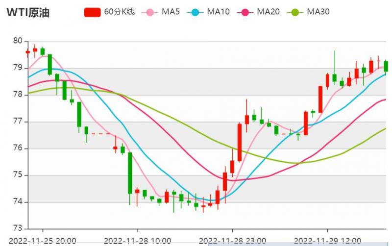 北京时间16:44,NYMEX原油期货上涨2.03%至78.81美元/桶;ICE布伦特原油期货上涨2.10%至85.65美元/桶。石油输出国组织和包括俄罗斯在内的盟友(OPEC+)定于12月4日举行会议。欧亚集团分析师周一(11月28日)在一份报告中表示,全球需求疲软可能会刺激OPEC+进一步减少产出。