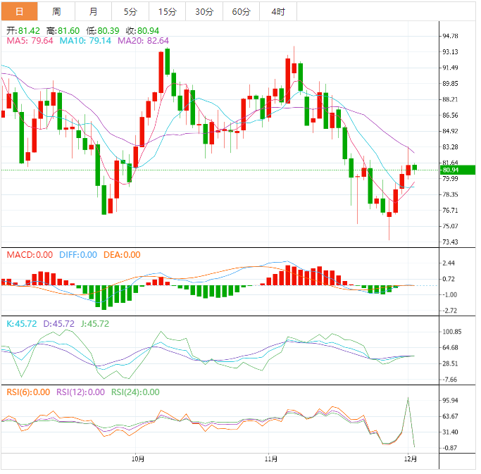 将Fib工具应用到每小时时间框架的最新波动中,结果显示61.8%的Fib接近前一个趋势线,约为每桶77.33美元。50% Fib接近移动均线的动态支撑,这增加了它作为底部的强度。小幅回调可能已经在38.2%的Fib价格(每桶79.68美元)找到了买家。