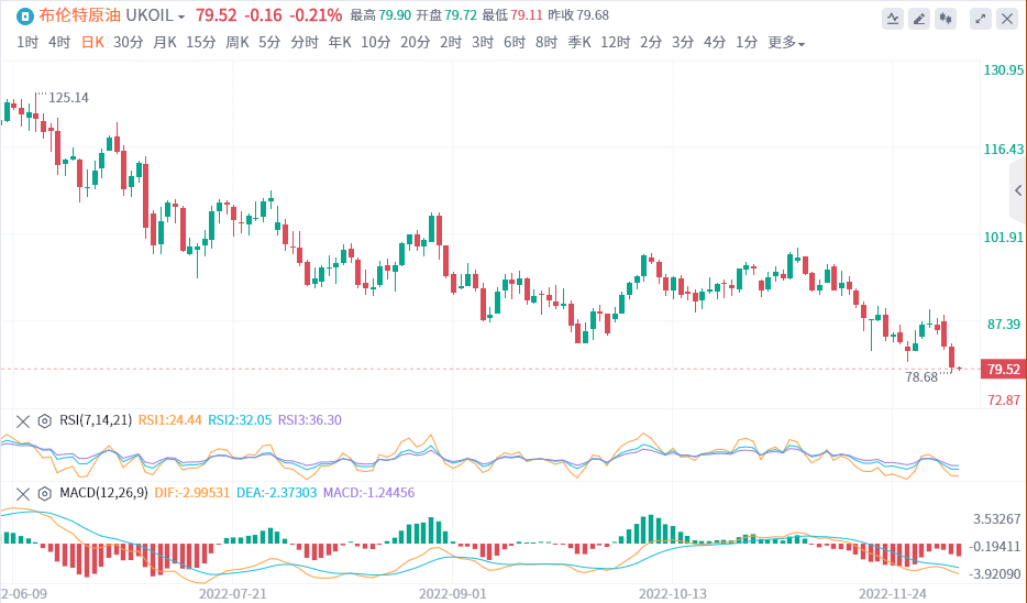 从96.95美元/桶开始的下跌趋势中的一组预测水平仍很好地控制下跌。这个预测分析表明,目标位是76.45美元/桶。