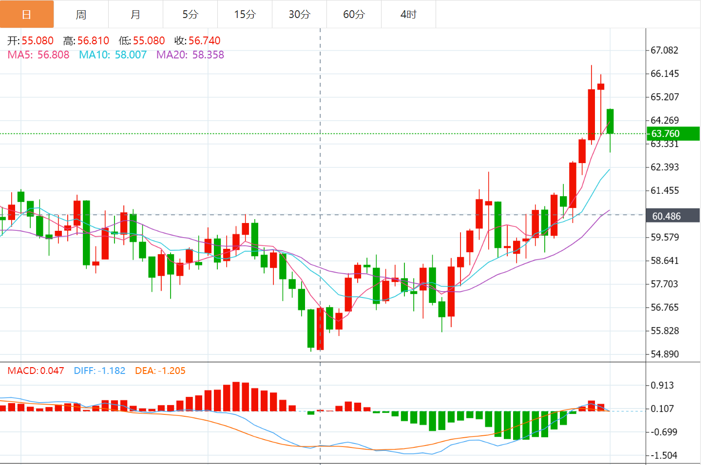 下跌趋势目前看起来很稳定,并将在预期的反弹完成后恢复。它最终可能会延伸到62.89美元/桶。