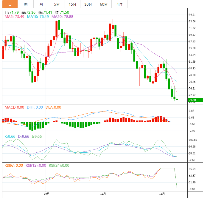 相对强弱指数(RSI)有更大的下行空间,但也正在逼近超卖区域,以反映原油空头的疲惫。
