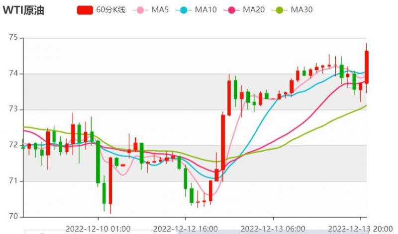北京时间16:15,NYMEX原油期货上涨1.23%至74.07美元/桶;ICE布伦特原油期货上涨1.33%至79.03美元/桶。