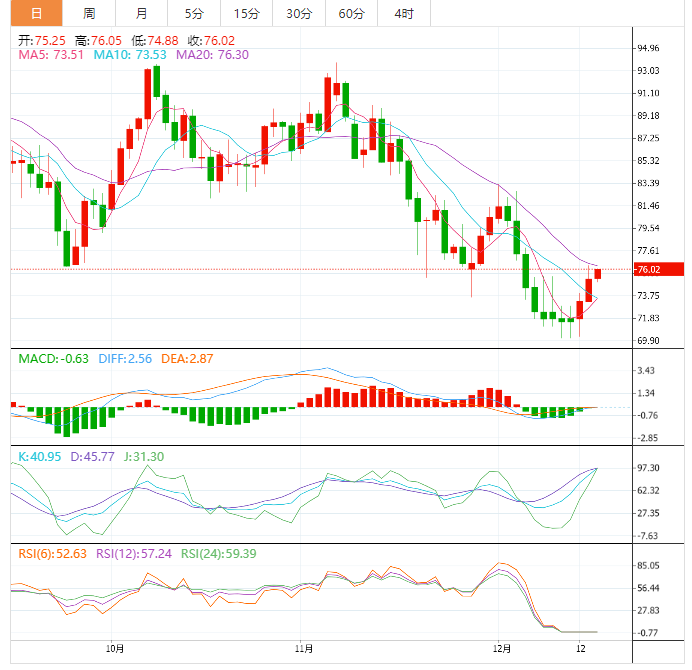 原油价格正接近61.8%的斐波那契水平,通道阻力位为每桶78美元,这可能是这次熊市回调的底线。如果油价继续保持涨势,原油可能会继续下跌至每桶70.22美元的波动低位或通道底部。