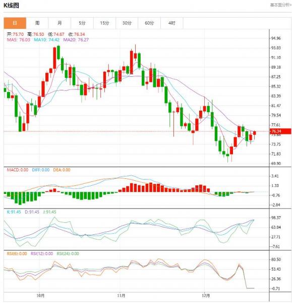 今天的预期交易区间在 77.61支撑位和 75.88阻力位之间。今天的预期趋势:看跌