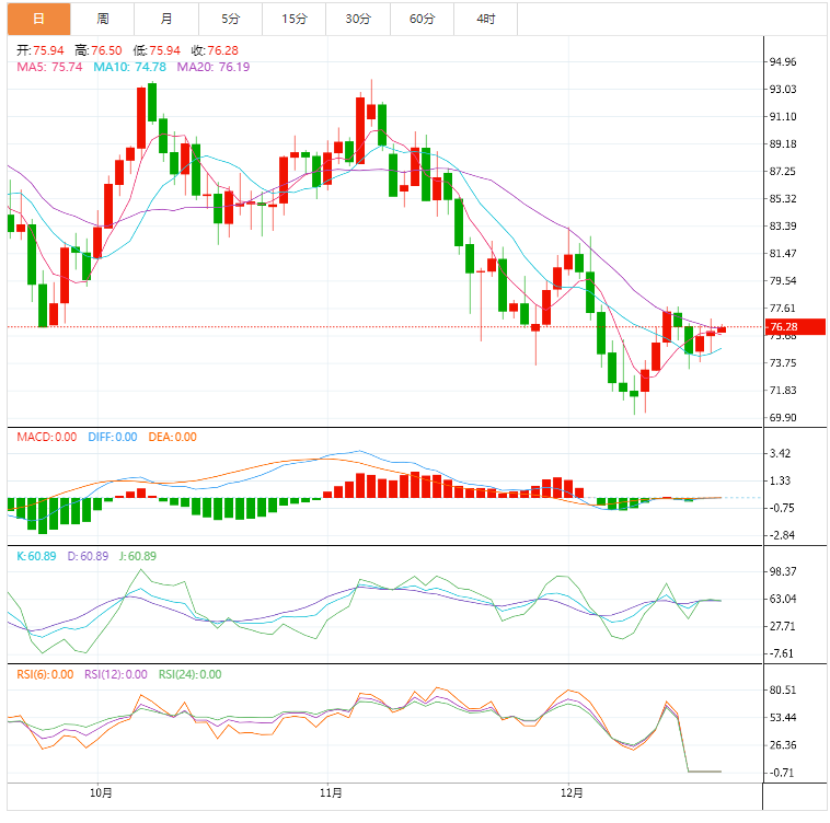 周三盘中,美油交投于76.26美元/桶附近;油价周二在震荡交投中收高,美元走软和美国回购石油补充储备的计划提振油价;此外,美国遭遇一场大型冬季风暴的前景恶化,引发了人们对数百万美国民众可能在假日季放弃旅行计划的担忧。