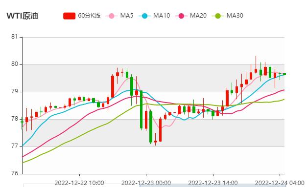 十二月二十三日原油开盘后,油价出现震荡上涨趋势,油价在78.0处形成支撑平台进一步走高,最高触及79.9美元徘徊。