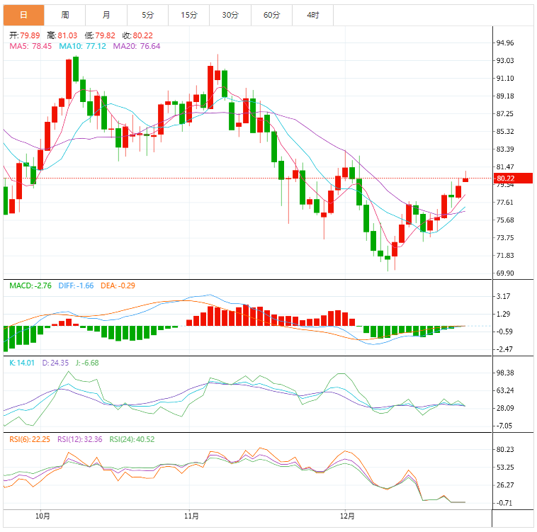 或者,回调的最初目标可能是在12月中旬的77.80美元左右的波动高点之前的80.00美元左右。