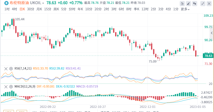 到目前为止,像样的反弹还没有出现,预计在布油跌至75.11美元/桶之前不会出现。从目前的水平反弹可能被限制在79.65美元/桶。