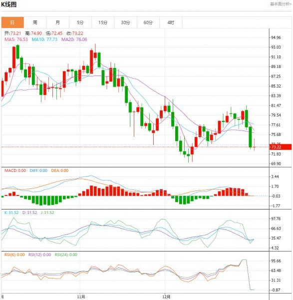 北京时间16:16,NYMEX原油期货上涨0.99%至73.54美元/桶;ICE布伦特原油期货上涨0.85%至78.49美元/桶。两市前两个交易日累计跌幅超过9%,是自1991年以来每年年初头两个交易日的最大跌幅。