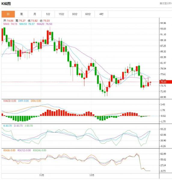 今天的预期交易区间在 72.50 支撑位和 76.00 阻力位之间。今日预期趋势:中性