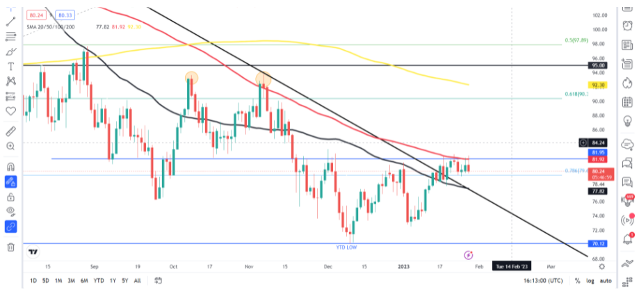 市场已经消化了下周可能加息25个基点的大部分因素,这意味着如果美联储没有进一步的看涨言论,美元可能仍容易进一步下跌。在下周的会议上,美联储没有公布新的经济预测,这进一步强调了新闻发布会对未来路径的暗示。