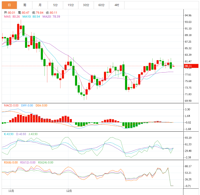 周一盘中,美油交投于80.12美元/桶附近;油价上周五周线收平至下跌,因为俄罗斯石油供应强劲的迹象抵消了美国经济增长数据好于预期、中质馏分油炼油利润率强劲以及中国需求迅速恢复的希望;周末欧盟未能就俄罗斯成品油价格上限达成一致,地缘局势依然支撑油价。