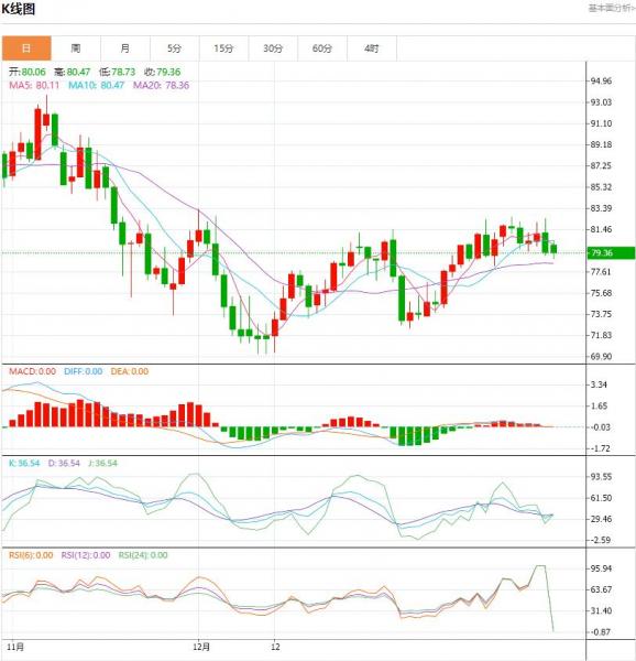 今天的预期交易区间在 77.61 支撑位和 81.46阻力位之间。今日预期走势:横向