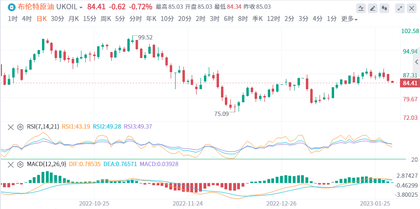 84.70美元/桶的支撑位预计会比85.79美元/桶的支撑位强得多。从逻辑上讲,油价在下跌之前可能会反弹。若突破87.05美元/桶,油价可能会上涨至88.11美元/桶。