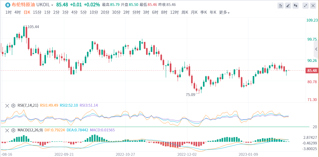 必须注意的是,从2022年12月9日的低点75.11美元/桶开始的短暂上涨趋势已经逆转,这一点从1月27日的高点88.95美元/桶开始的下跌中可以看出。油价可能在疲软的反弹之后恢复下跌。即使楔形形态意外地延伸,它至少可能跌至80.72美元/桶。